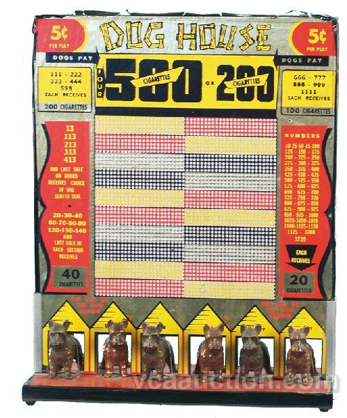 "Dog House" Punchboard, 6 chances to win bronze scotty dog, unpunched.