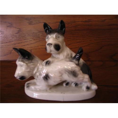 Scotty dogs full of vim and vigor. How the dogs were painted and posed is VINTAGE 50's. These are ever so cute. Scotties are timely and these depicted in the statue are just as cute as cute can be.