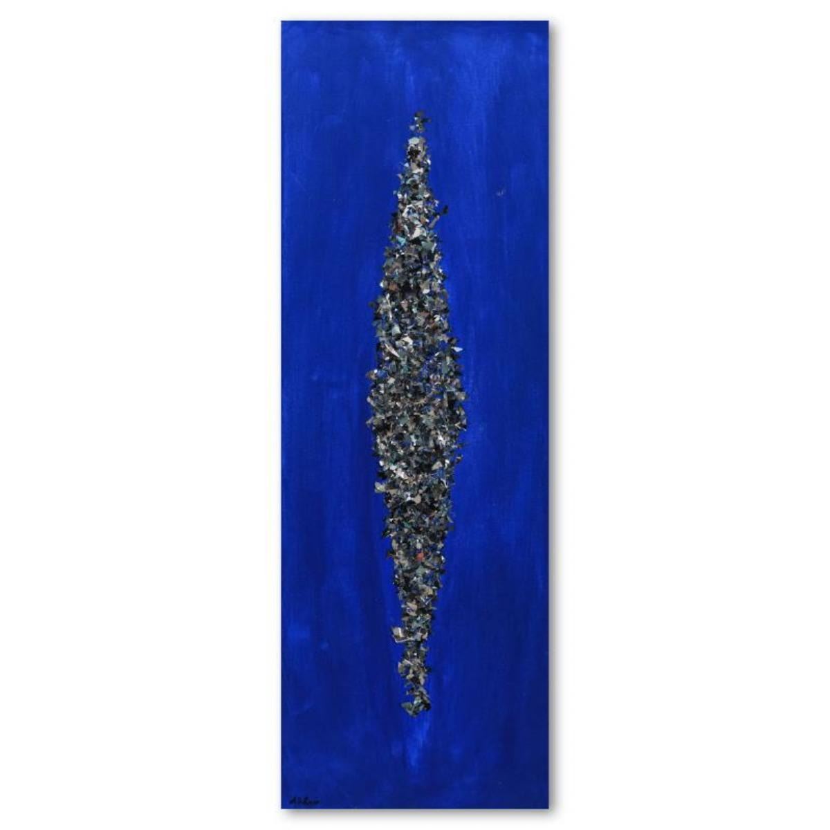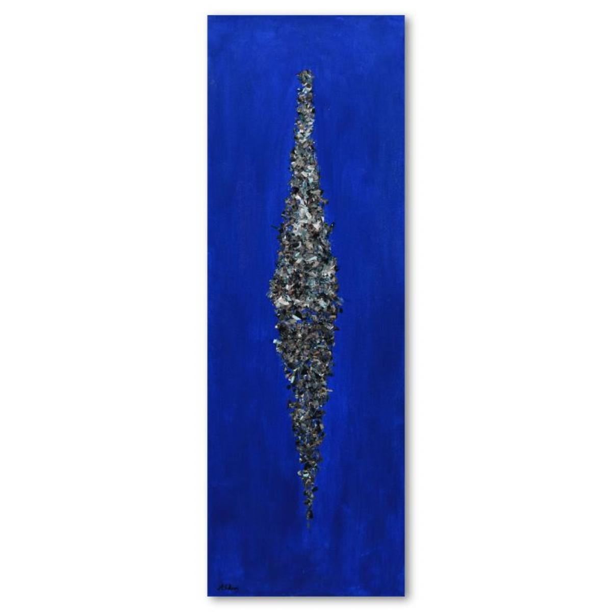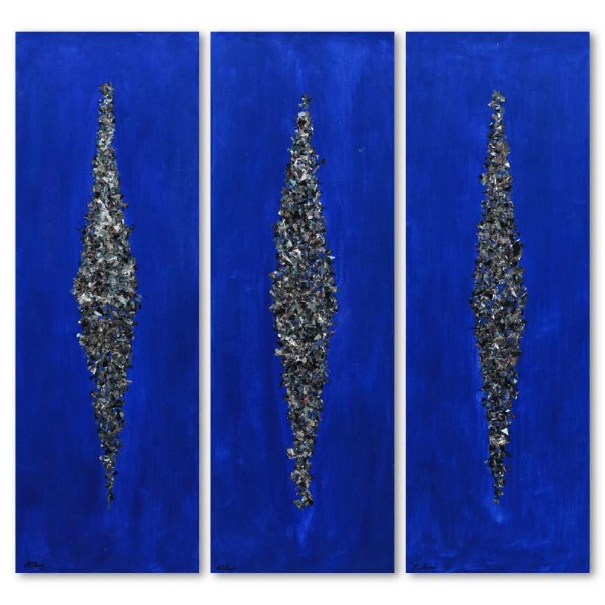 Doge (Triptych) by Ashouri Original. "Doge" is an original acrylic triptych painting on canvas with crystal stones, hand signed by David Ashouri. These pieces come gallery wrapped. Includes Letter of Authenticity. Each pieces measures approx. 12" x 36" (image). There are minor scuffs on the canvas; particularly on the corners and edges.