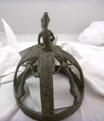 Dogon Bronze Crown with multiple effigies. Item measures 9 by 7 inches. Shipping is $20.00 Very Good condition