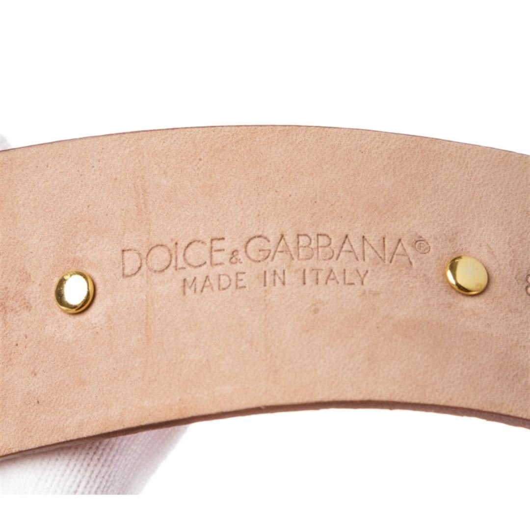 Dolce & Gabbana brown snakeskin belt with gold-tone rhinestone buckle closure at front. Item is pre-owned. Item Dimensions: Length:36.5" Width:1.5"/Length: 92.71cm Width:3.81cm.