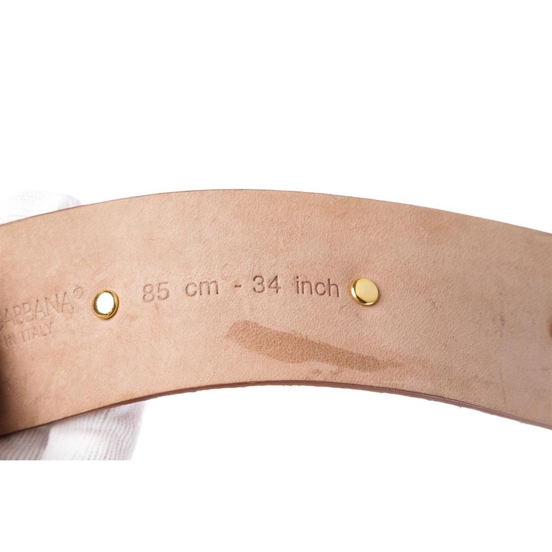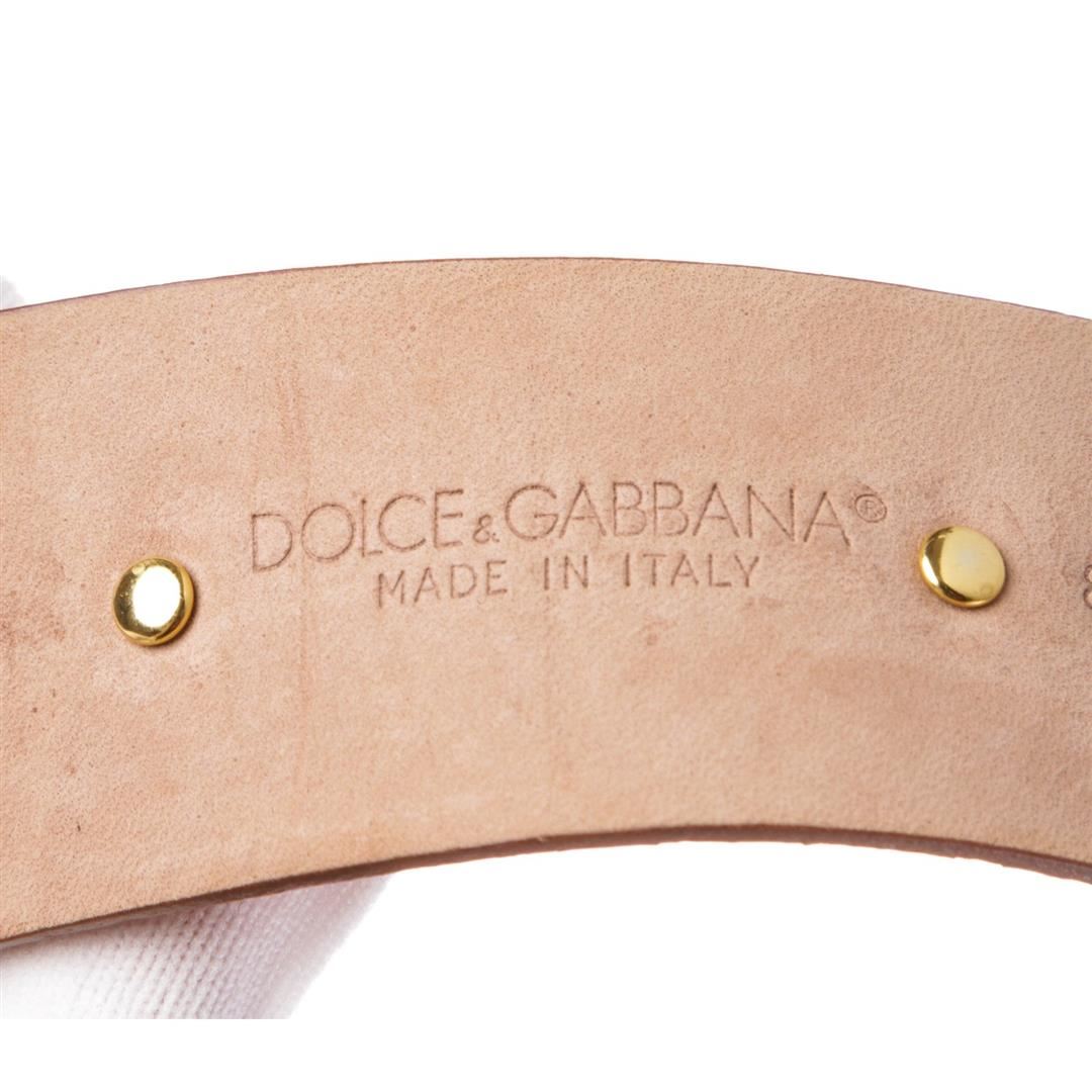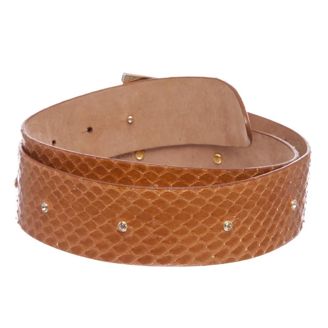 Dolce & Gabbana brown snakeskin belt with gold-tone rhinestone buckle closure at front.