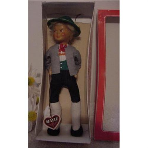 National Costume Boy Doll from Austria made by BAITZ. F. & G. on tag, #8520-9. Box does not have cellophane on top. End of box is marked BAITZ F. & G. Smoke free home.