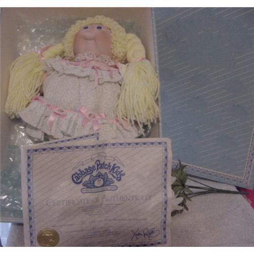 16" Cabbage Patch Girl in Porcelain, with porcelain head and hands. Comes with Certificate of Authenticity and box, box is worn. <P><P>Got questions, email before you bid. <P><P>Shipping is $20, covers shipping, handling and insurance.