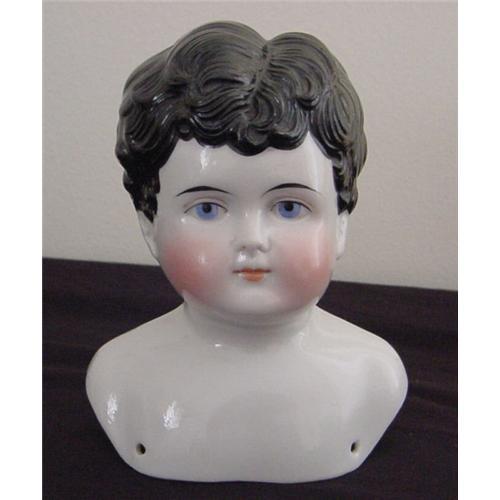 Wonderful white china boy head #1210 made in Germany by Alt, Beck and Gottschalck. Marked on the back of the shoulderplate 1210 # 6. The head measures 5" tall. Exposed ears and great molding to hair, sideparted hair. Tiny little rough place on the lower rim right under the number 6 on the shoulderplate.