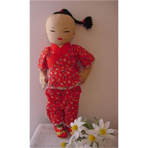 18" cloth Ada Lum doll, marked on the stomach ADA LUM and DiDi. Body is stamped. All original clothing, embroidered features, yarn pigtail. Separate stuffed fingers. <P><P>Shipping is $10, cover shipping, handling and insurance.