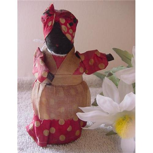 Old 4.5" black cloth BELL doll. The item has apparently sat on a kitchen shelf for years and has dust and maybe grease on it. Don't know how you would clean it. Bell still works. <P><P>Got questions, email before you bid.