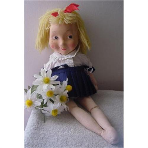 20" cloth Eloise, played with from the 1950s. She has her original outfit on, no shoes or socks. Her face has some damage and some oil. Yarn hair needs some help.<P><P>Shipping is $15, cover shipping, handling and insurance.