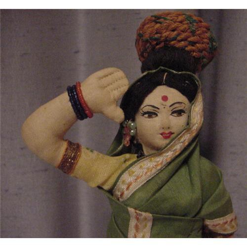 Wonderful 9" cloth foreign India Woman. Painted features, tiny beaded bracelets. The same little beads are used in her necklaces. She carries a basket on her head and a rope in her one arm. Got questions email.