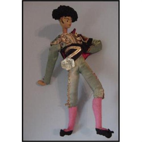 7.5" cloth Matador, paper tag says Galia Barcelona Espana. Made in Spain, looks like the Roldan or Klumpe dolls. Painted features.