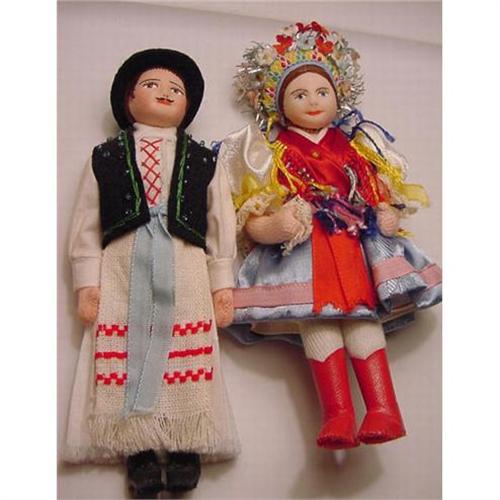 7.5" pair of Hungary Bride and Groom. They are all cloth with painted features, he has brown eyes and she has blue eyes. Wonderful Wedding Costumes. A great pair of dolls for any collection. <P><P>Email with questions.