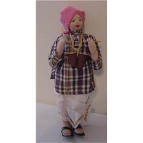 10" tall man, Instrument Player. Painted features. Paper label on back says Christa Seva Mandir Doll-production, Sholapur, India. <P><P>Shipping is $10, covers shipping, handling and insurance. <P><P>Email with questions before you bid.
