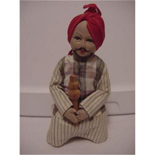8" Cloth Snake Charmer from India, he is holding is musical There is one stain under his knee. <P><P>Email with questions.