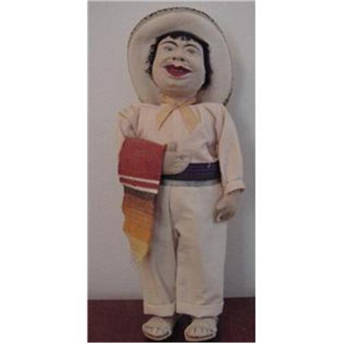10.5" made in Mexico Cloth Old Man. He is really great, painted features, open mouth with teeth. The sole of one sandal is stamped made in Mexico. Great detail, came from a private collection, was purchased through the Kimport Dolls but no Kimport tag. The Doll Talk advertised him as a FAT MEXICAN. The lady had quite a large collection on Kimport Doll Talk Magazines and most of her collection was from the Magazines.
