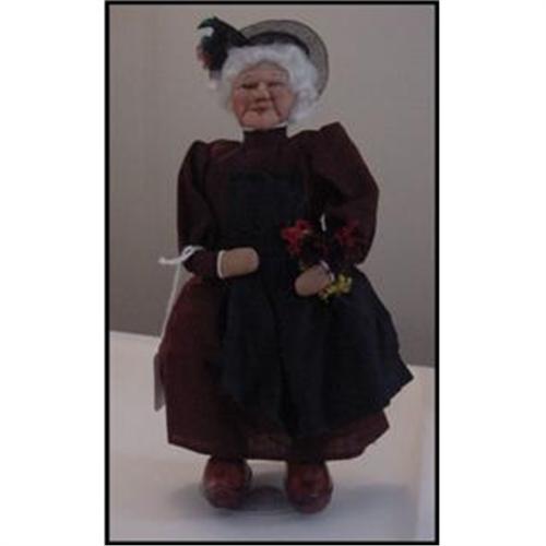 Wonderful face on this old lady, made by Bernard Ravca. This is one of his 10" stockinette old people. She has her blue Made in France tag sewn on the back of the skirt. I only see two holes on the back side of her dress near the edge. <P><P> Shipping is $10.00, covers shipping, insurance and handling.
