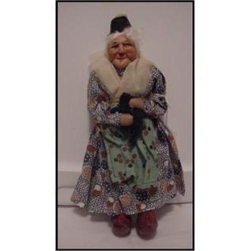 <table width="100%" border="0" cellspacing="0" cellpadding="4"><tr><td><em> </em></td></tr><tr> <td width="100%"> 10" cloth Ravca Little Old Woman, The MADE IN FRANCE cloth tag is on the back of the dress. She is great condition, with only a hole in one hand. Wonderful costume on this little old lady. Hand painted facial features. Comes from the Ravca Estate.