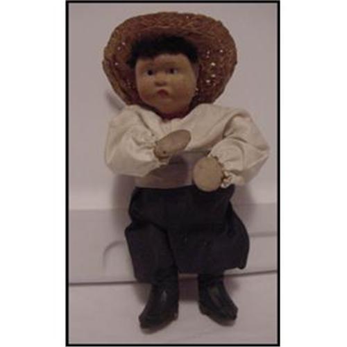 Wonderful 7" stockinette Russian doll, has painted features, black wood boots. Has a tag on the back of the waistband that says Made in Soviet Union and something else. He has a straw hat. The waistband is faded. <P><P>Email with questions.