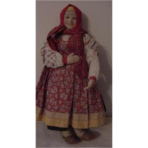 13.5" Made in the Soviet Union Woman, made in the 19230s. Great face, stockinette material, has some light overall soil but a great doll. Hands show some wear on stockinette. Great painting on face. No tag that I see. <P><P>Shipping is $18 in the USA, cover shipping, insurance and handling. <P><P>No PAYPAL, can process Visa, MC or Discover for US customers. Outside the USA Money Order required.