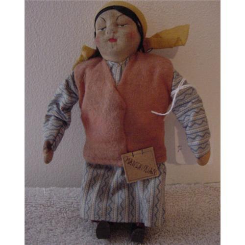 <P><P>6" MANCHURIAN Woman cloth stockinette MADE IN THE SOVIET UNION doll, has painted features, wooden shoes. Dirt on felt. Stain on cloth near hand.