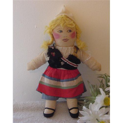 10.5" cloth doll, Swedish Girl, painted features, yarn hair. Was sold to me as a WPA and I think it could be, there is no marking on the doll. Another Scottish Man and Hawaiian Girl are listed in other auctions. <P><P>Got questions, email before you bid.