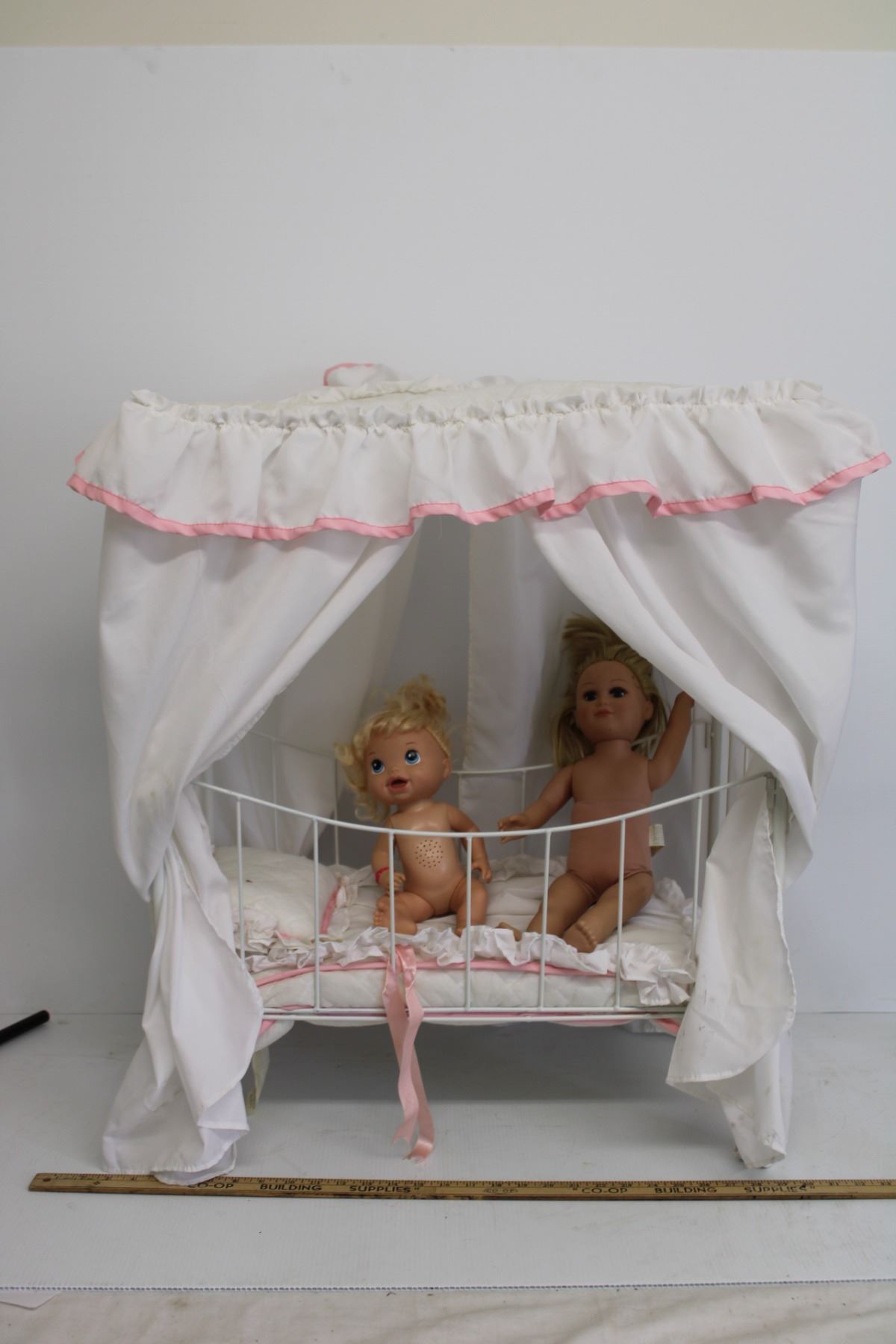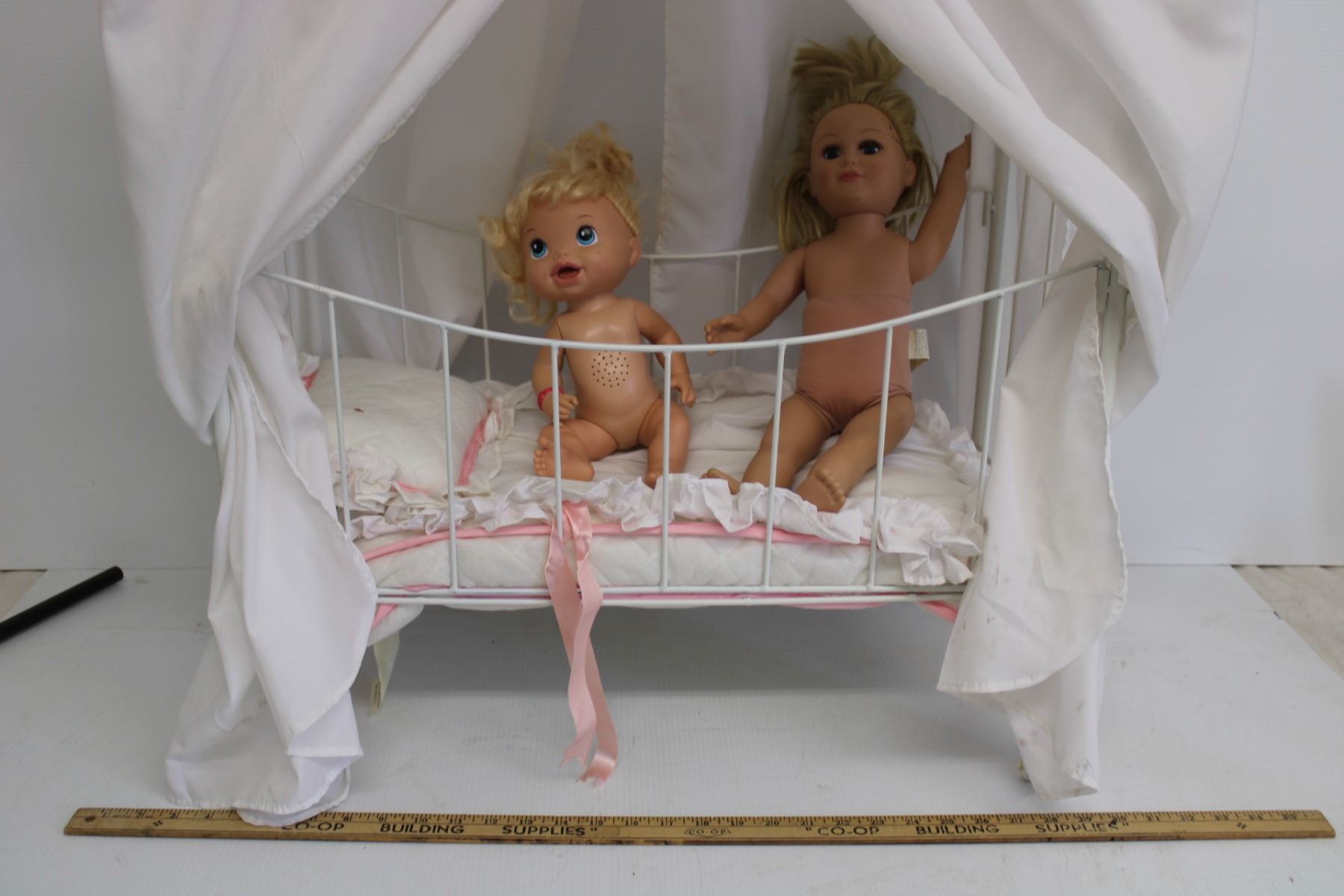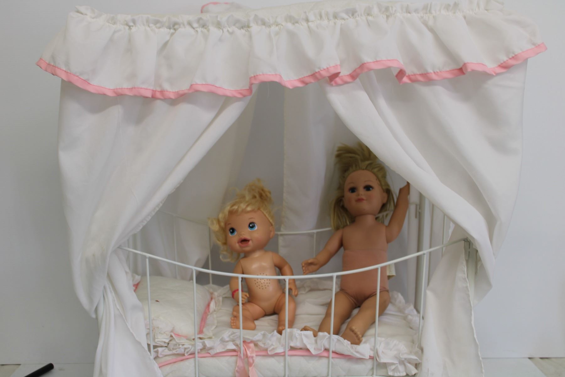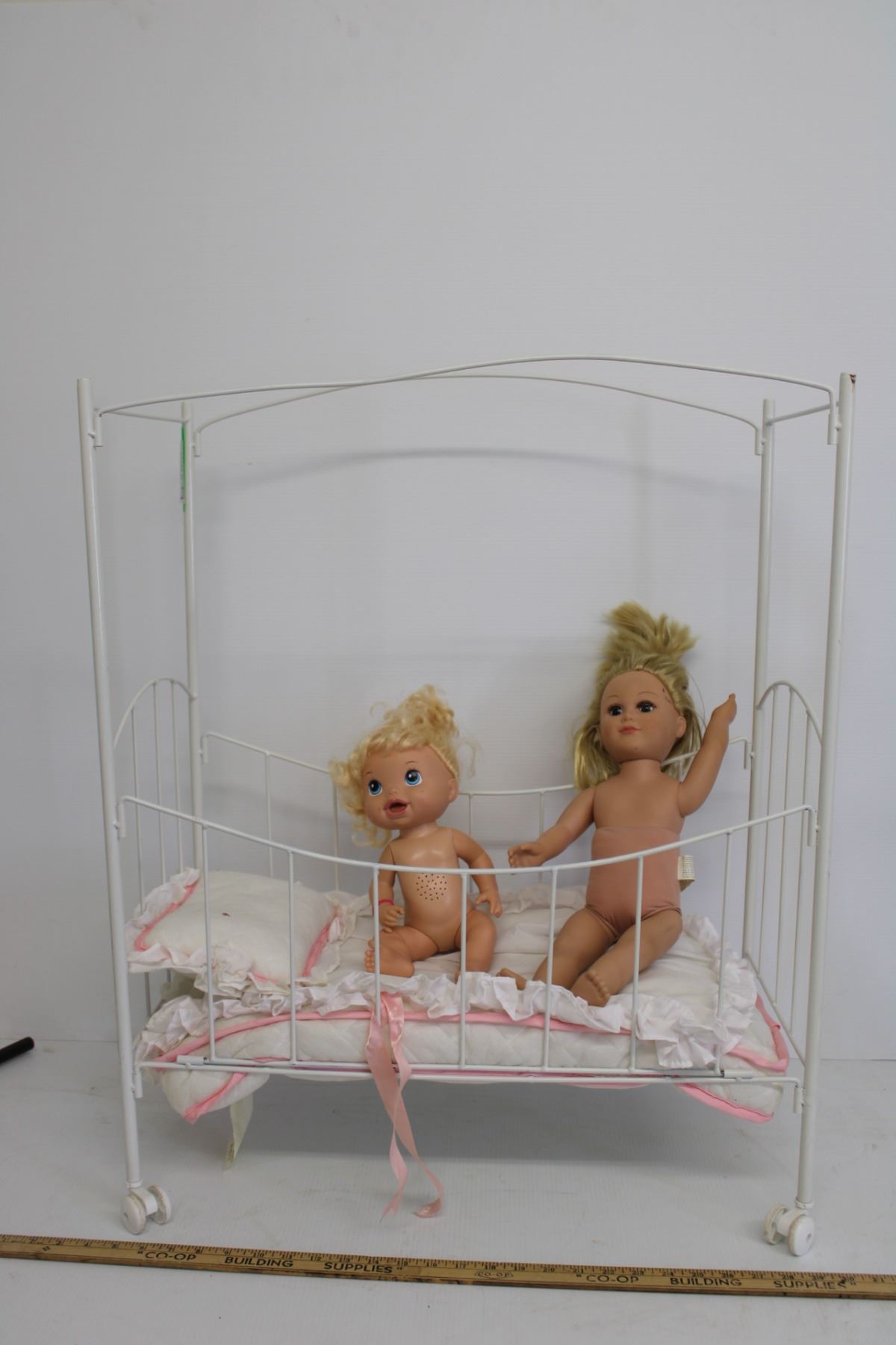 *Doll Crib on Wheels-Includes Dolls, Blankets and Pillows
