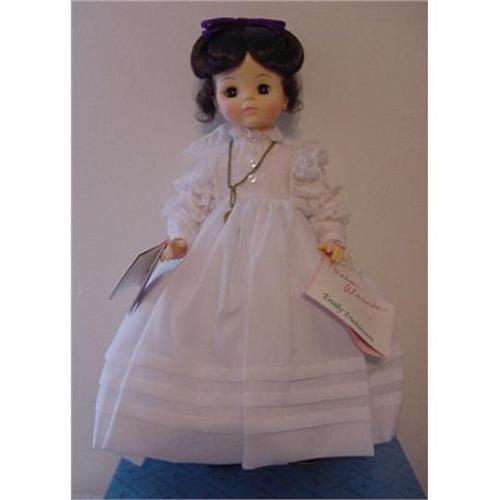 Darling 14" jointed vinyl Madame Alexander EMILY DICKINSON. She is stock number 1587. Comes with her wrist tag and box. Looks brand new.
