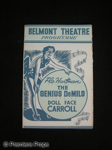 Program for The Genuis DeMilo, used in Doll Face (1946). The film starred Vivian Blaine and was written by Gypsy Rose Lee, a noted striptease artist. (8.5x6)