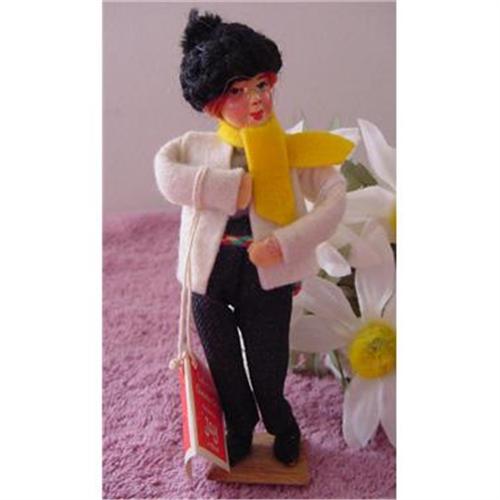 5.5" Jay doll made in Ireland, MAN OF ARAN, has wrist tag that also says Specially made for Shannon Freeport Shop Ireland. Painted feature and RED wig. Felt hand and legs. On the base is written 1996. <P><P>Got questions, email before you bid.