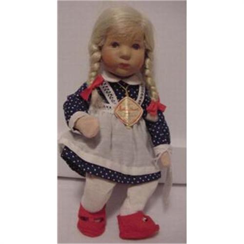 Darling 9" Kathe Kruse doll, hard plastic type head with painted features and rooted braids. All original and has paper tag on chest, Original Kathe Kruse Modell Hanne Kruse Made in Germany. The body of this doll was stuffed with foam or something, it is flat now, so needs to be restuffed. Doll is mint otherwise, wearing all original outfit.