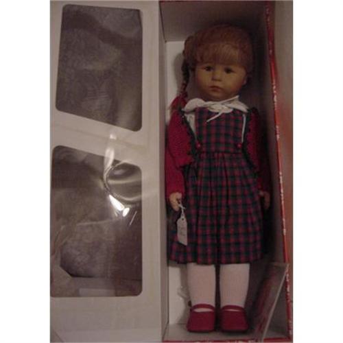18" Kathe Kruse Girl, FLORI, made in Germany. She has brown hair and brown eyes. She has her wrist tag, and her box. The box is has a hinge type top and see thru window. Made in Germany. Smoke Free Home.