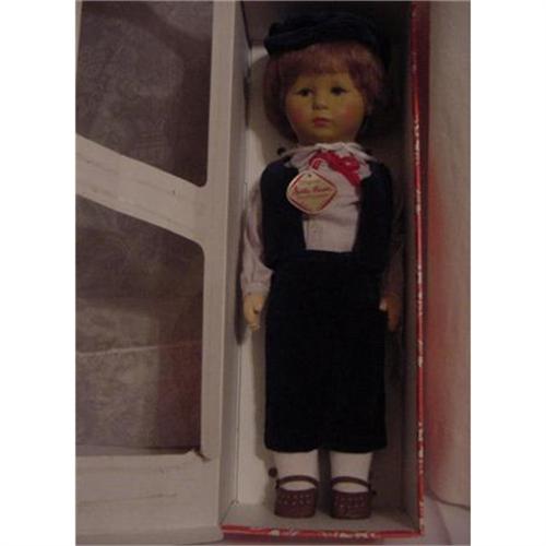 18" Kathe Kruse Boy Doll, TIM, made in Germany, Sept. 1986. He has brown hair and blue eyes. He has his wrist tag, and his box. The box has a hinge type top and see thru window. Made in Germany. Smoke Free Home.