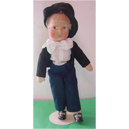 16" Cloth Madame Alexander David Copperfield. All original,great example of Madame Alexander's early dolls. Beautiful coloring, little rub on nose. Blonde mohair wig, original clothing and hat. Tagged David Copperfield. As you can see there is a rust stain around his waist from an old doll stand, that was before they were coated. The little safety pins have never been taken off.