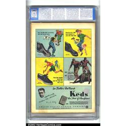 Doll Man Quarterly #1 (Quality, 1941) CGC VF- 7.5 Cream to off-white pages. Doll Man was one of the lucky superheroes to get quality treatment during his tenure in the Golden Age, basking in the talent of such greats as Will Eisner, Lou Fine and Reed Crandall. Here, he makes his solo debut in a run that would last well into the 1950s. A solid copy with light edge wear and good eye-appeal. Overstreet 2002 VF 8.0 value = $1,979. Important notice: We expect to be auctioning lots at the rate of 200-250 per hour. Sometimes eBay Premier live bid software cannot keep up with that pace, so we strongly recommend that you place a realistic proxy bid now as insurance to avoid disappointment. Also please note that all Heritage/CAA lots purchased through eBay Premier carry a 20% Buyer's Premium.
