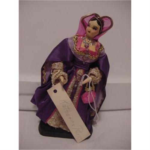 <table width="100%" border="0" cellspacing="0" cellpadding="4"><tr><td><em> </em></td></tr><tr> <td width="100%"> 6.5" Katherine Parr, Bernard Ravca made her. Papier Mache with painted features. She comes on a wooden base. Great costume.