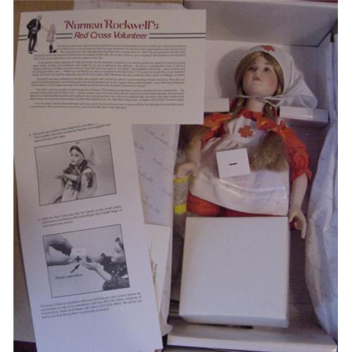 Hre is the RED CROSS VOLUNTEER by Norman Rockwell, 13" porcelain doll, comes with box and all paperwork. Offered by The Danbury Mint. <P><P>Got questions email before you bid.