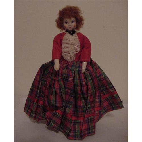 <P><P>9" Ruth Gibbs China Godey's Little Lady Dolls, this doll is a harder doll to find, she is the 9" size with the skin wig. She is pink china and pink cloth body, straight arms and legs, and gold dipped slippers. She has some wear on the back of the wig. You can see the RG on the back of the shoulder plate. She is wearing blue net pantaloonsand the dress is an original dress for the 9" size doll but it has white net slip, makes me think this doll has another dress at one time that had the matching blue on the slip of the dress. There is a pin hole at the back waist of the dress also.
