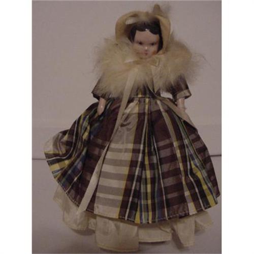 <P><P>7" Ruth Gibbs China Godey's Little Lady Doll. She is Play Friends of the Year NOVEMBER Play Friend No 511P. Comes with the paper label on the back of the inside of the dress. Pink china, pink body, straight arms and legs, gold dipped slippers. Her hair color is black. I have lots of the dolls from the month series, so check my other auctions. Dolls were displayed but in really nice condition. Felt hat with trim, top of hat is a little dingy. Clothing has never been removed.<P><P>Shipping is $10.00, covers shipping, handling and insurance.