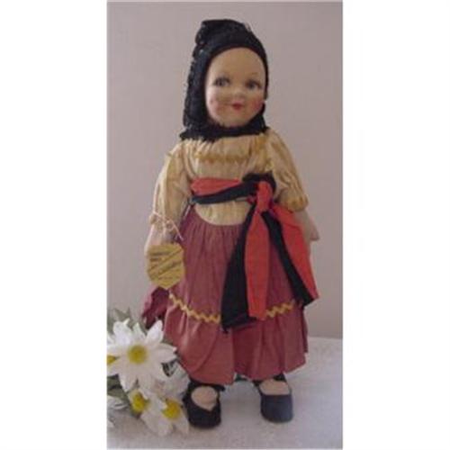 15" cloth International SPANISH doll, made by Silk Novelty Corp. of New York City, made in the 1940s. One cheek is dented a little. Comes with wrist tag. <P><P>Got questions, email before you bid.