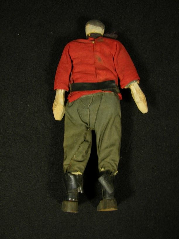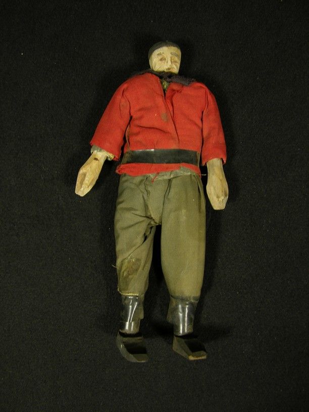 Doll figure made of paper mache and dressed in cloth garb resembling that of a Frenchman, sourced from Twentieth Century Fox and used in a Golden Age production.