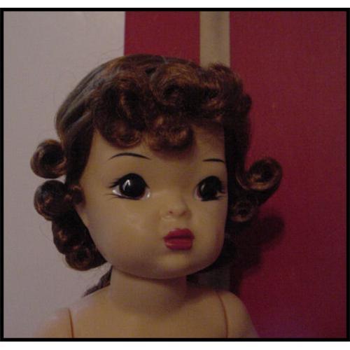<P><P>Here is a 16" Terri Lee doll made in the 1950s. She has silver in the whites of her eyes. Beautiful raysheen auburn wig. Panties are stretched in the waist. No cracks or stains, etc. Wears original daisy on wrist. She comes with a red bow Terri Lee box. The box is flimsey. It has a sticker on the bottom of the box, says #1108 Terri in Party Pants & slip Wig #3.