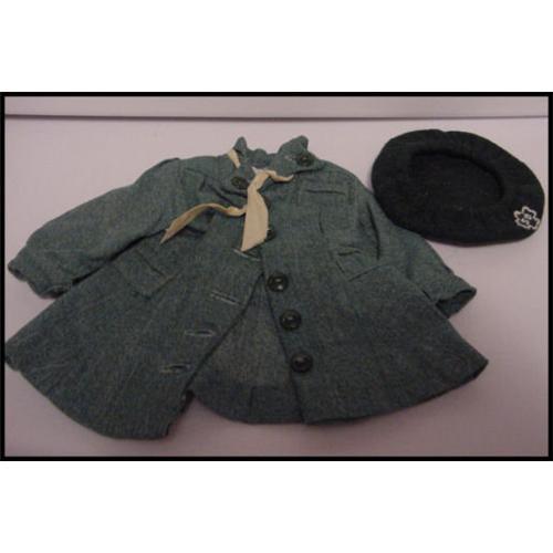 16" Terri Lee Girl Scout Uniform, has the buttons that were used on the early outfits. Has the fish hook Terri Lee tag. Girl Scout hat with GS emblem. There is no belt.