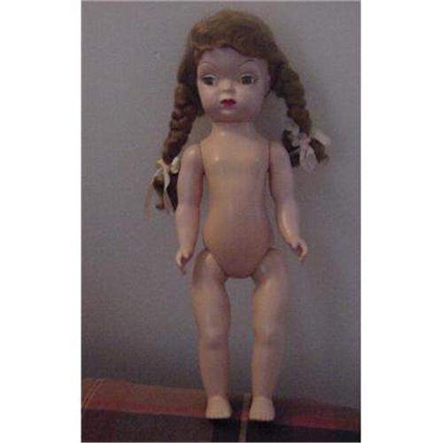 16" hard plastic MARY JANE doll, she was offered for a short time, made in the Terri Lee likeness. Lawsuit came about and the doll was taken off the market in this form. She is a painted doll with a walker mechanism. Her eyes were to open and close and flirt. You have to move her eyes, they don't move on their own.