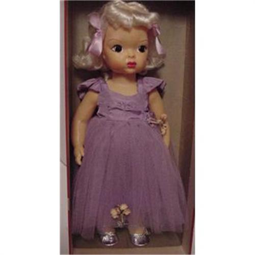16" VINTAGE 1950s Terri Lee Platinum in lavender short formal. Wonderful doll, comes in her red Terri Lee box, the box shows some wear and does not have a label on it. She is marked Terri Lee on the back.