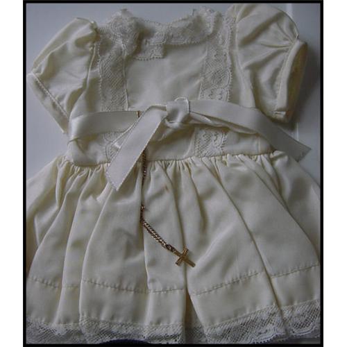 16" Terri Lee Doll White Confirmation Dress with Cross Necklace. Printed Terri Lee tag, one little spot on skirt. Material is a satin taffeta, just wonderful.
