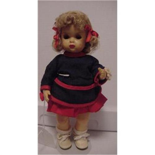 Wonderful Tiny Terri Lee doll from the Terri Lee family. She is wearing a little red dress with white trim, and her artist smock over it. She is all original, even has her daisy on her wrist. She is a walker, head turns when you move her legs. Eyes do not open and close on their own. She is vintage from the 1950s and looks brand new. A great addition to any collection. <P><P>Email with questions.