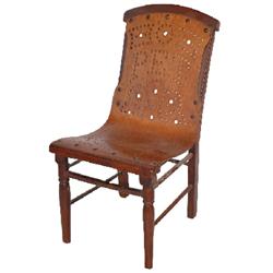 Doll chair, walnut w/pierced bent paneled back, all original w/original finish, 1 stringer shows repair, c.1910, 8.5"W x 17"H.