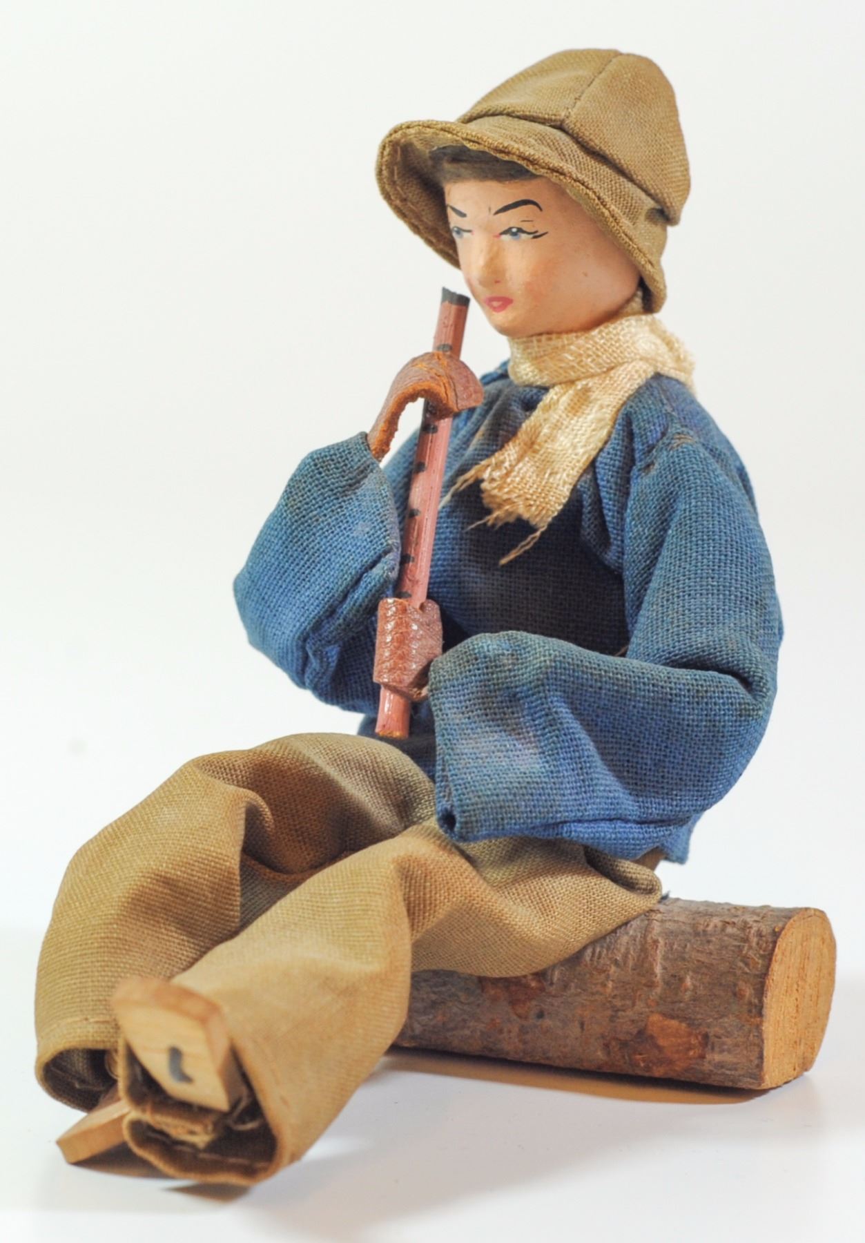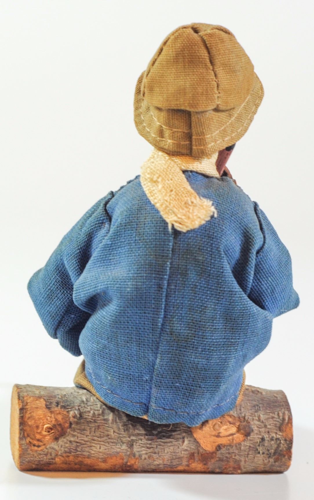 Doll of a seated pioneer playing a pipe, by WIZO, circa 1950s, wood and clothing, height: 11 cm.