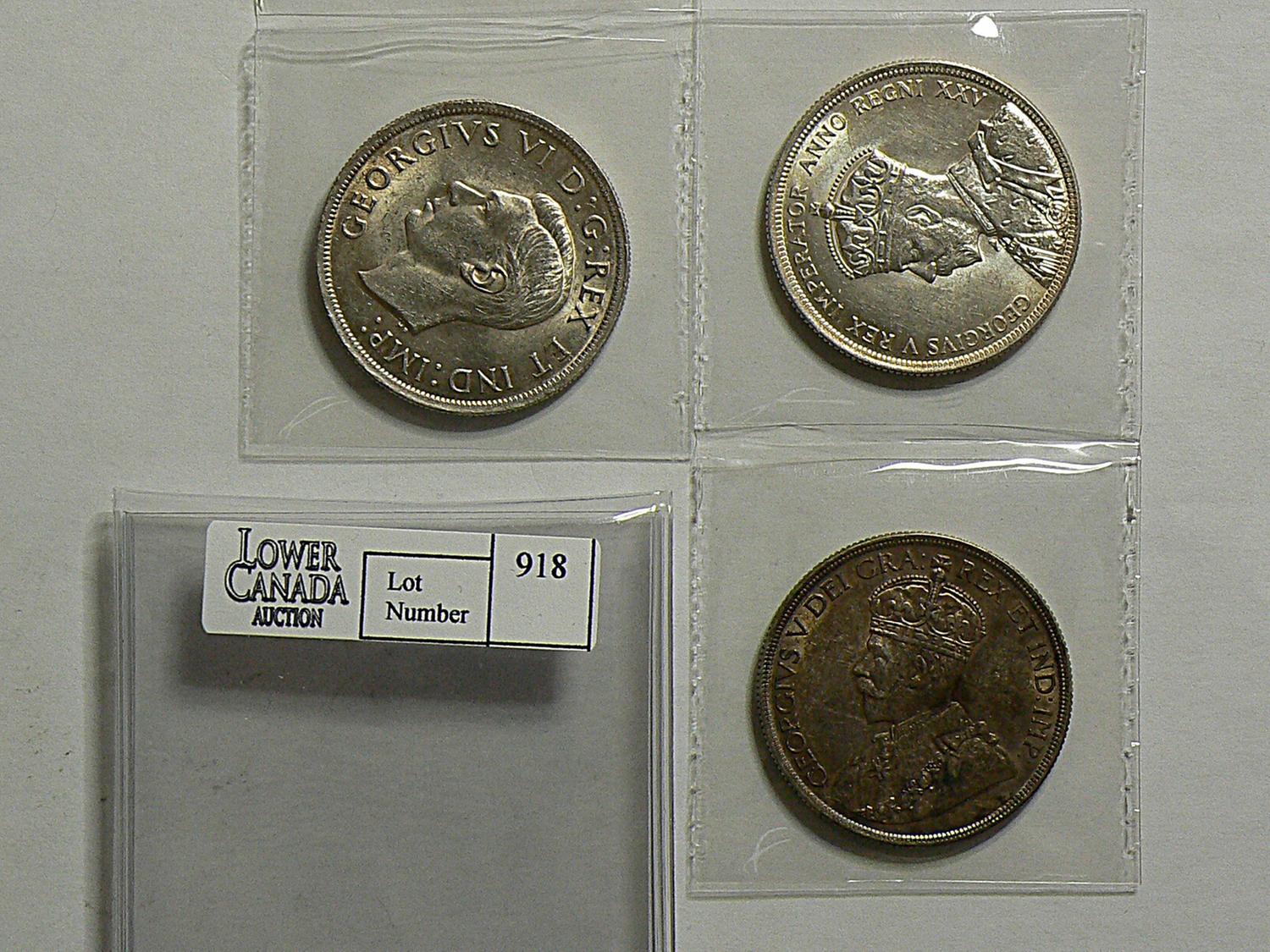 Dollar 1935, 1936, 1938, grade EF to MS. Lot of 3 coins