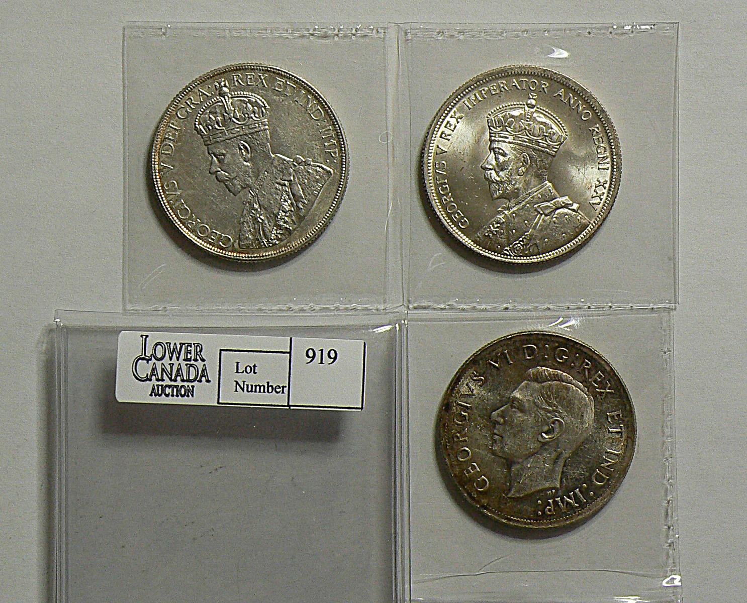 Dollar 1935, 1936, 1938, grade EF to MS. Lot of 3 coins