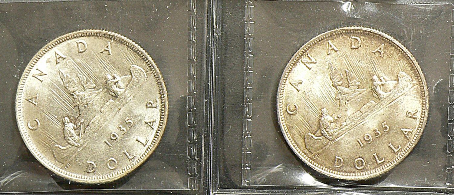 Dollar 1935, graded ICCS MS-63. Lot of 2 coins